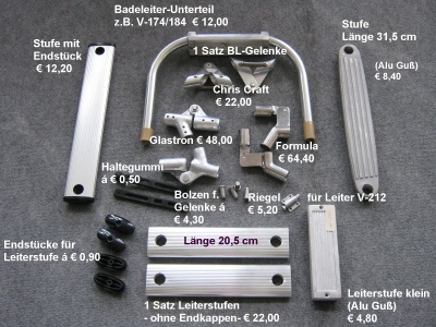 (02) z.B. für V-174/184 € 12,00 (03) für Spirit 165 € 28,00 (07) für V-225 nur Bügel von € 14,00 + € 18,00 in 2 verschiedenen Längen Leiterriegel V-212 € 5,20 Bolzen für BL-Gelenke € 4,30